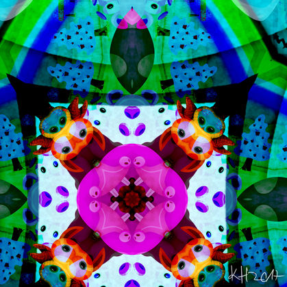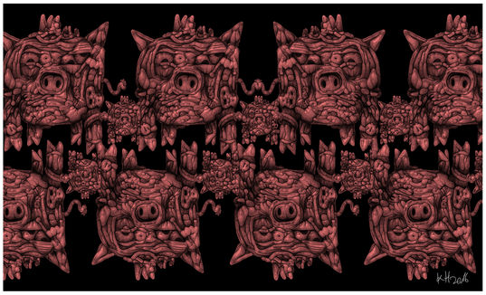 In my work, I study the associative imagination and the abstract form. With the surrealistic imagery of the hybrid animals, geometric, amorphous, and flow elements,